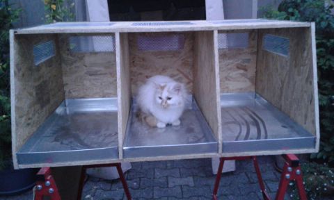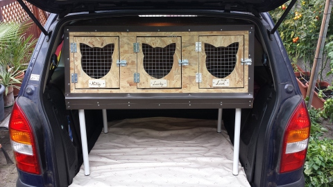 Drei Katzen und noch genügend Platz für die persönlichen Sachen. In zwei Tagen entstand unsere maßgeschneiderte Transportbox der Oberklasse.